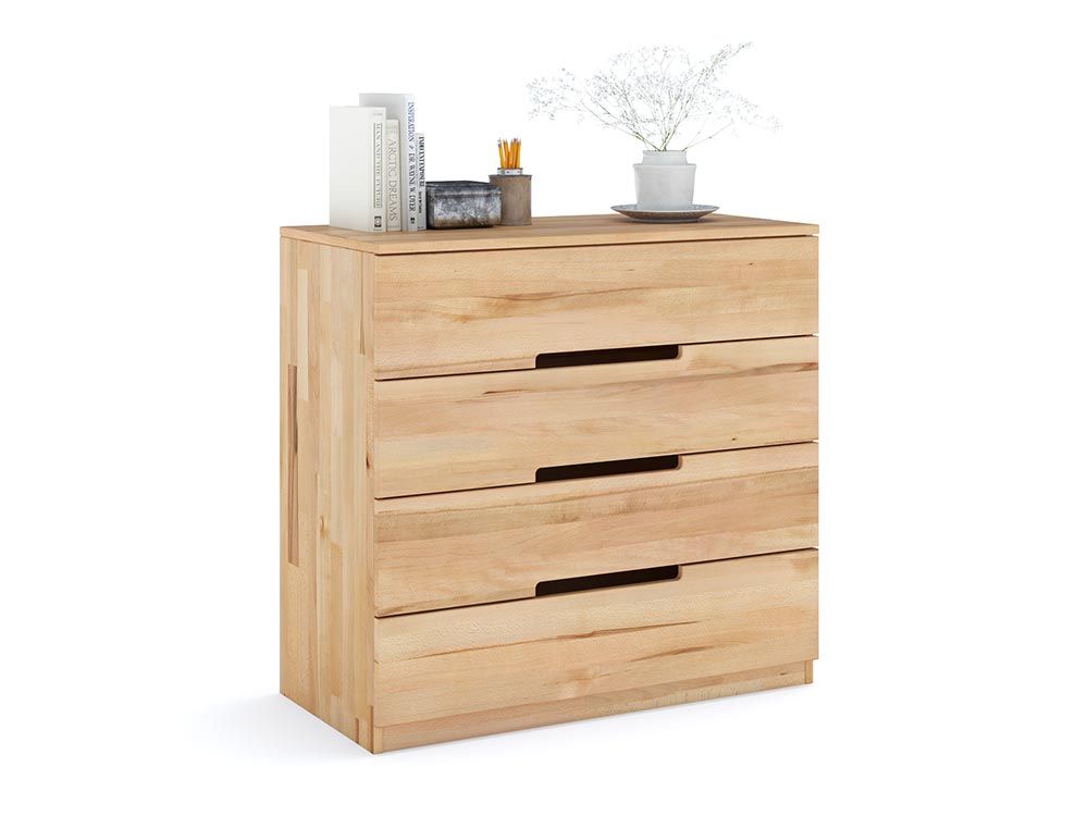 Komoda Ketrin je skvelým riešením pre miestnosti so svetlým dizajnom. Malá komoda Ketrin sa hodí do dizajnu každej miestnosti vďaka výbranej povrchovej úprave lakom, alebo impregnácii prírodným olejom, ktorý zdôrazňuje štruktúru a krásu prírodného dreva. Hlavným materiálom je vysoko kvalitné bukové drevo, ktoré zaručuje dlhú životnosť nábytku. Ľahký buk bude vhodný v každom interiéri a 4 zásuvky vám umožnia ľahko a pohodlne umiestniť veľké množstvo vecí. Vo výške 860 mm nevyzerá komoda Ketrin ťažkopádne a originalita je zabezpečená absenciou vyčnievajúcich rukovätí. Hlavné výhody: kompaktné rozmery s dostatočnou kapacitou; prírodné materiály; trvanlivosť a pevnosť; originálny a štýlový vzhľad