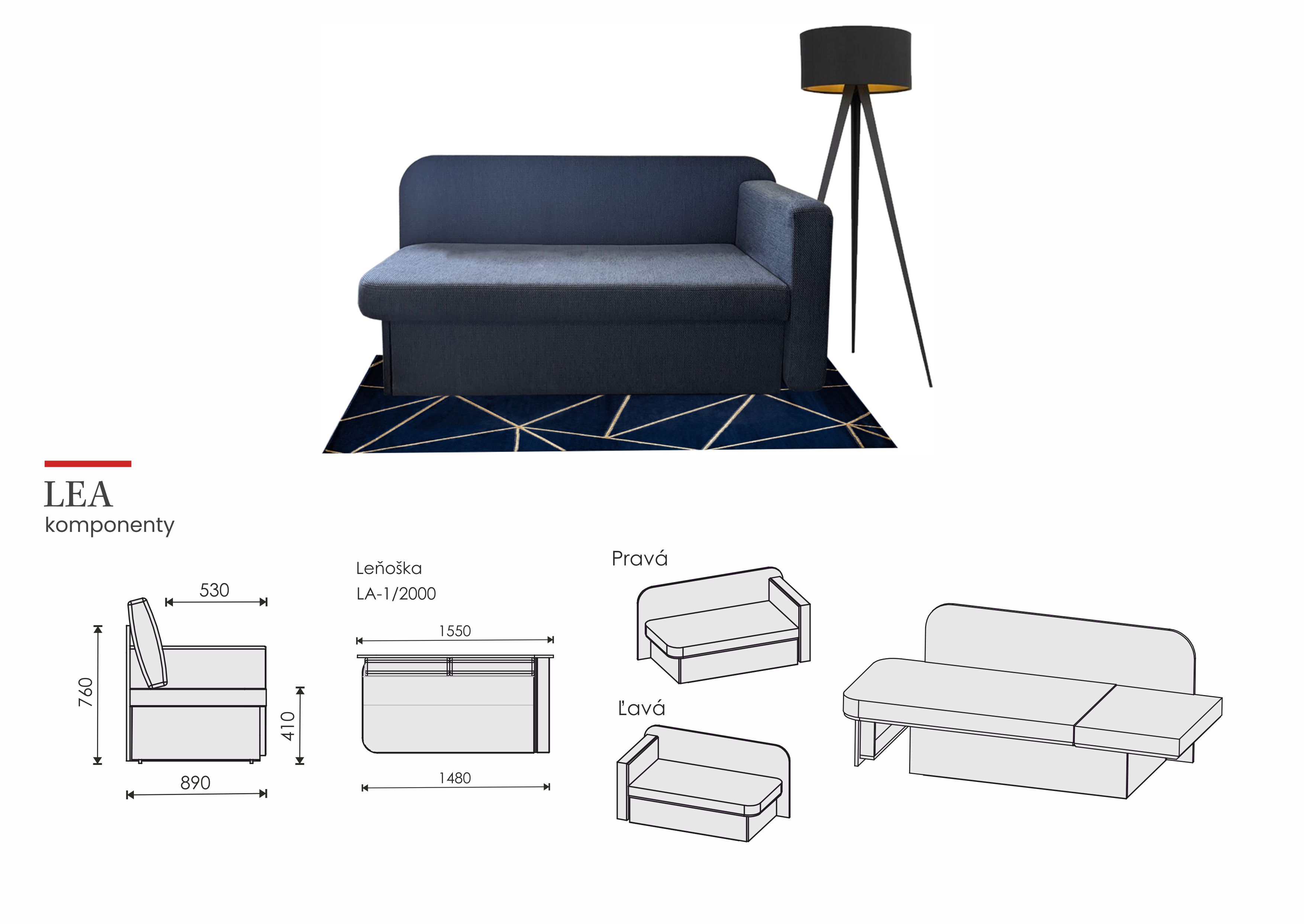 Jednoduchá no za to elegantná rozťahovacia leňoška Lea má po rozložení dĺžku lôžka 2 m a preto je vhodná aj na príležitostné spanie.