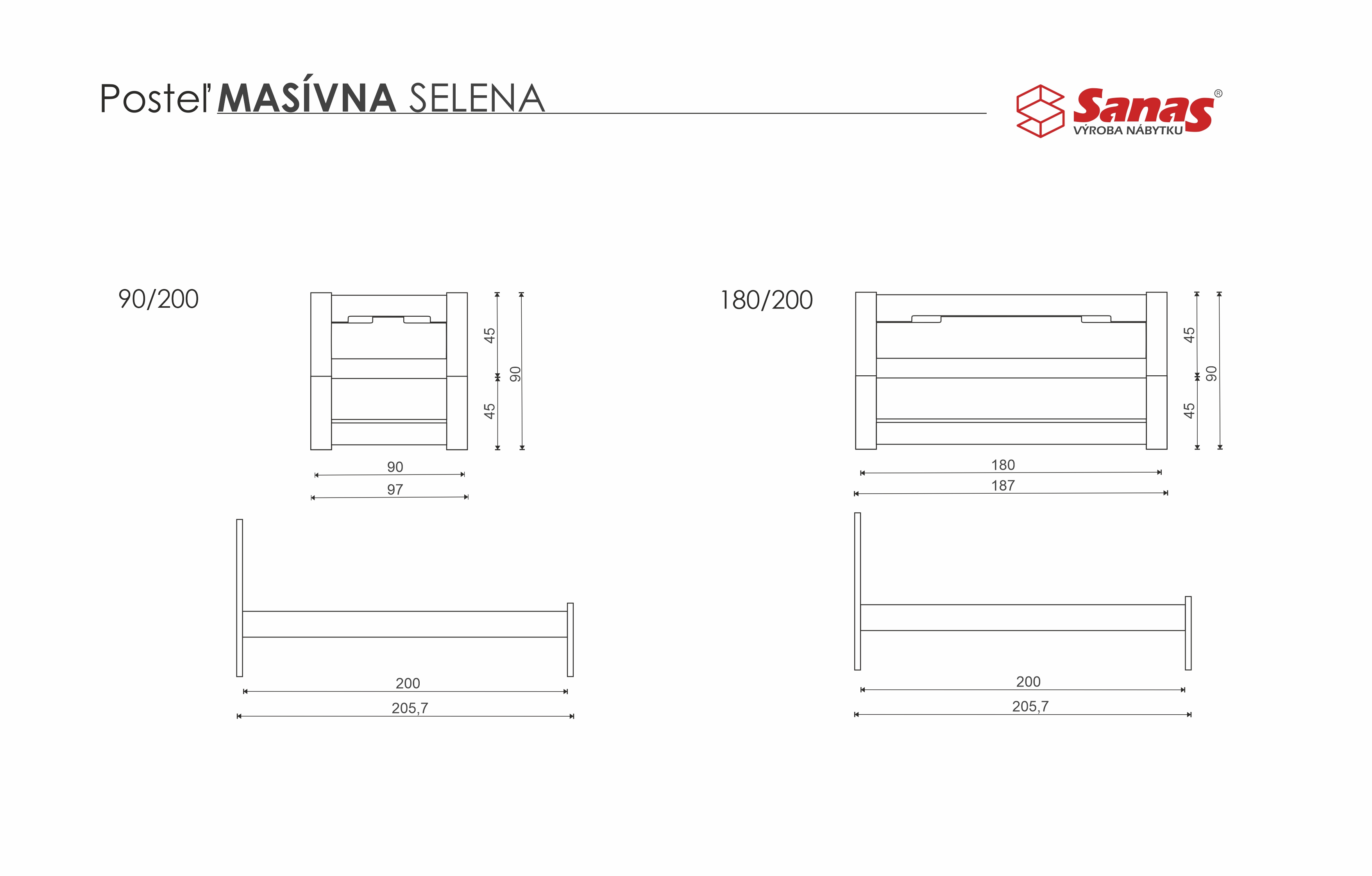 Ak ste sa rozhodli pre seba vytvoriť pohodlný, zdravý a zároveň lakonický interiér vašej spálne, tak model SELENA sa Vám iste hodí. Prírodné masívne drevo z buka je vhodným materiálom pre vyhotovenie posteli, a povrchová úprava postele je o to viac dôležitá v súvislosti s predmetmi, ktoré nás obklopujú. Na výrobu základne rámu postele SELENA bol použitý jeden z najodolnejších druhov dreva - buk. Je to drevo s jemnou sieťovinou so spoľahlivou odolnosťou a karamelovými odtieňmi od pomerne svetlých až po tmavé. Estetická posteľ s možnosťou výberu farebného prevedenia, materiálu, povrchovej úpravy a veľkosti premení Váš interiér podľa vlastného uváženia zo štandardného na osobný.