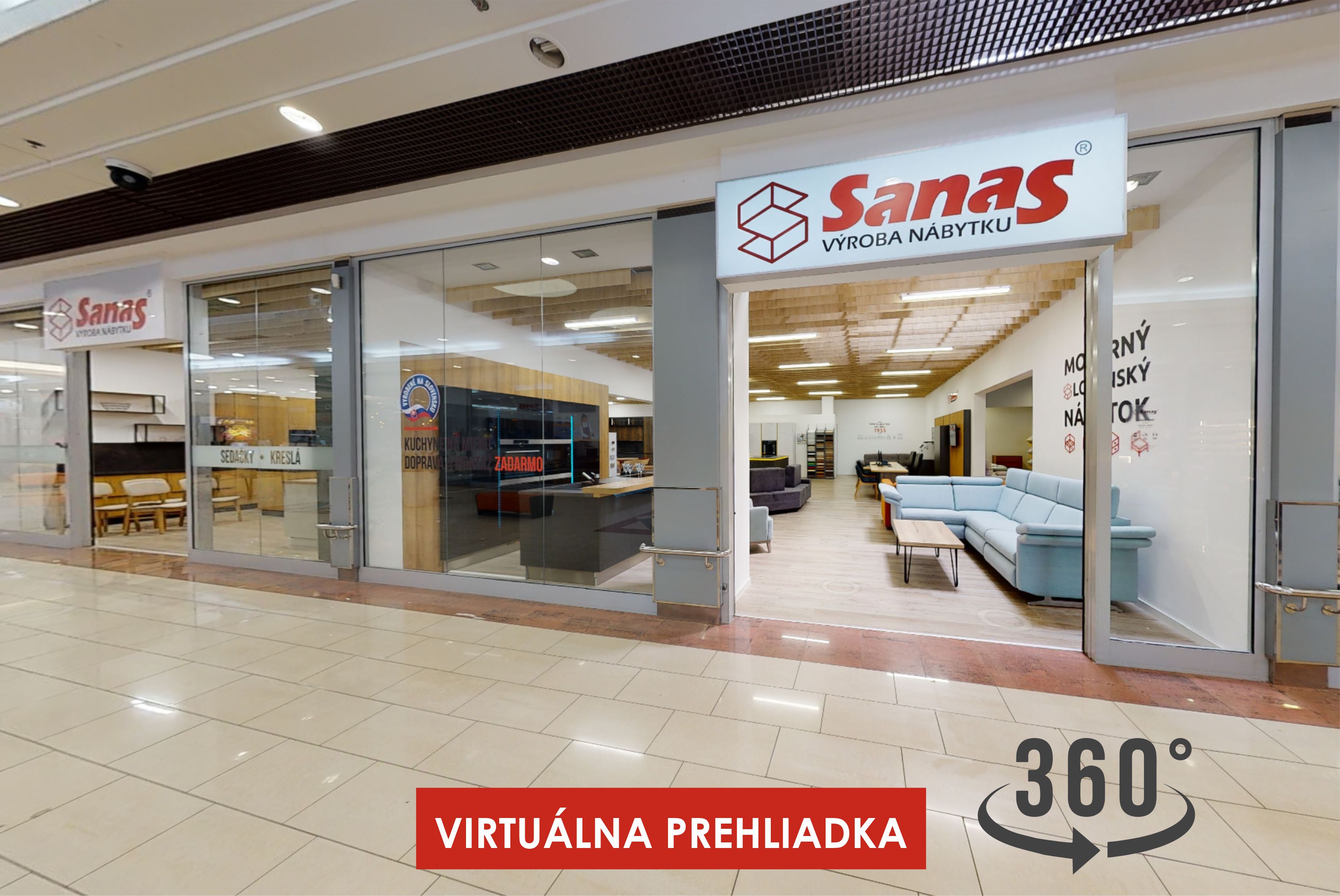 Predajňa Nábytok Sanas Košice ponúka kompletný sériový výrobný sortiment za vynikajúce ceny. Zastúpený je kompletný sortiment bytového nábytku t.j. – kuchynské linky, obývacie steny, komody, predsiene, postele, spálne, šatníkové skrine, sedacie súpravy, stoly, stoličky, kancelársky nábytok, bytové doplnky. V každom ročnom období vám ponúkame jedinečné zľavy na vybraný sortiment. Radi Vás preto privítame. Parkovanie pre zákazníkov je dostupné pred obchodným centrom Cassovia bezplatne.