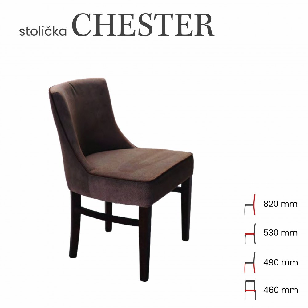 Stolička Chester má pevnú konštrukciu z masívneho dreva, mäkké čalúnenie a elegantný dizajn, ktorý sa hodí do každej izby, ideálna na čítanie, relaxovanie, alebo pozeranie televízie.
