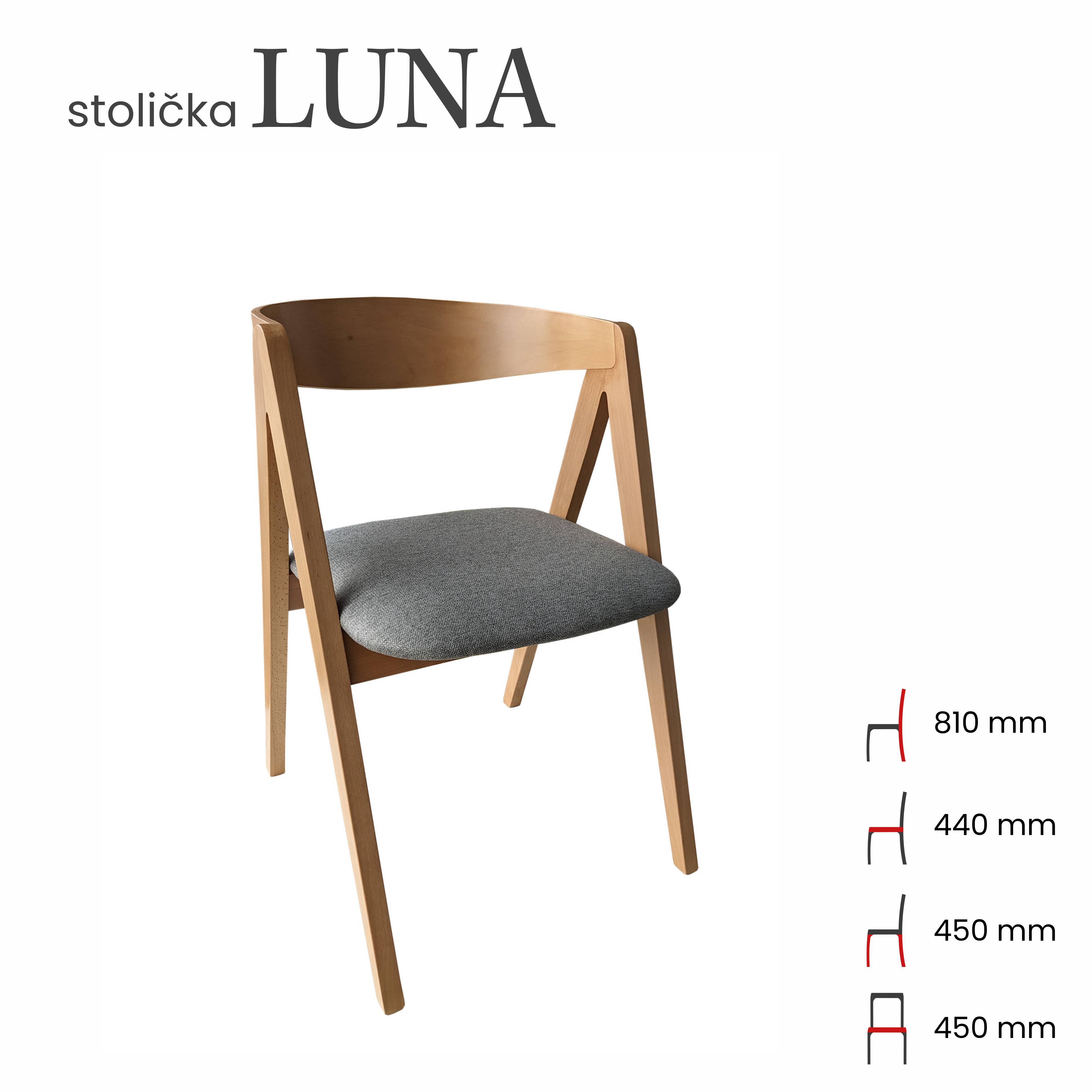 Stolička Luna je moderná, dizajnová a hlavne pevná. Vyrobená z kvalitných materiálov, ponúka precízne povrchovo upravené drevo a nezameniteľný štýl.