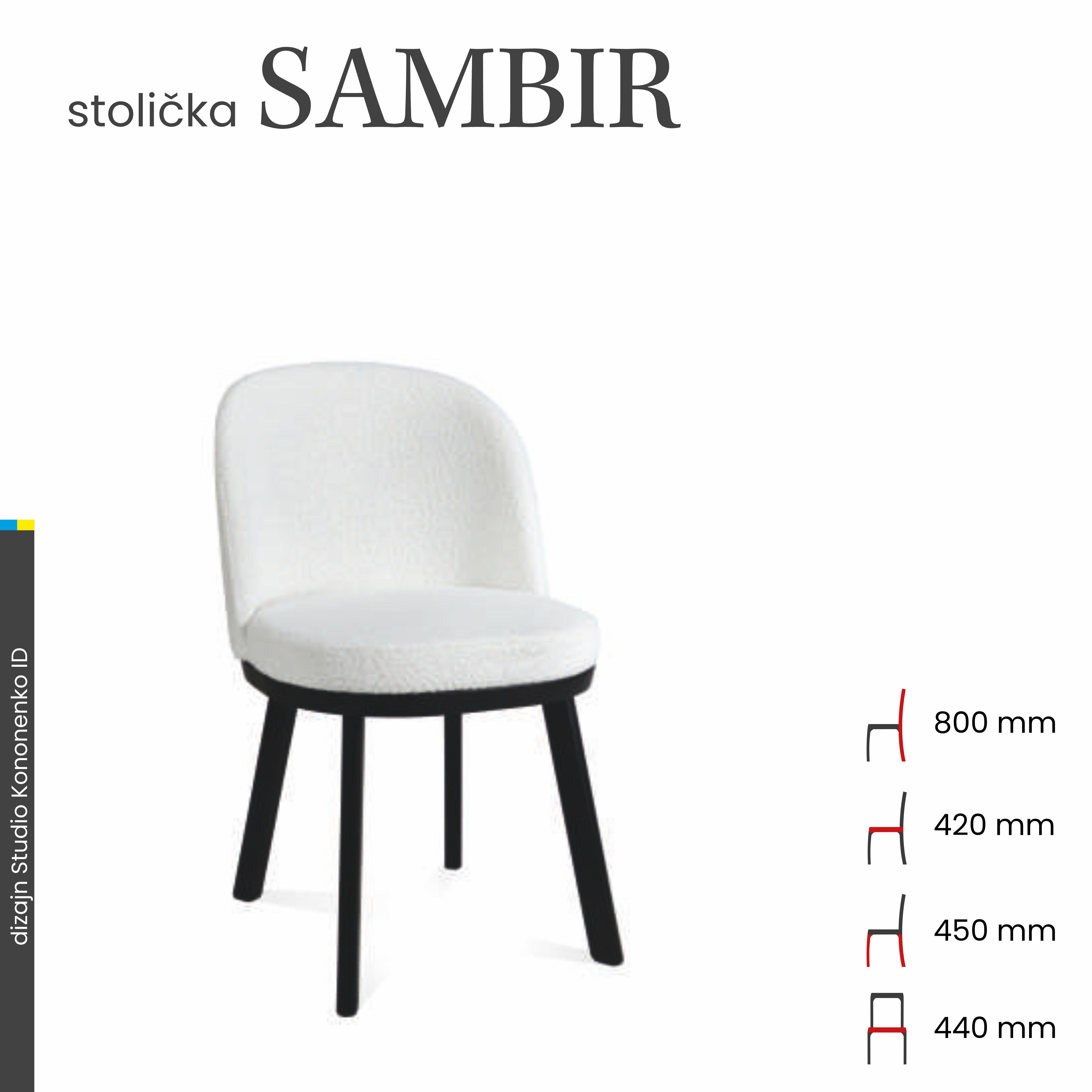 Stolička Sambir je elegantná, pohodlná a praktická. Je vyrobená z kvalitného dreva a látky, ktoré sa ľahko čistia. Ideálna do obývačky, alebo jedálne.